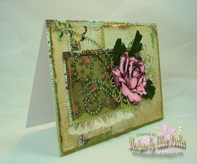 Whew! Now that I finished that CAS card, I get to have fun with layers, flowers and lace!! And here it is: