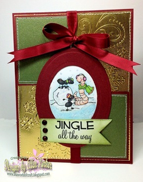 What a darling card!! Love those adorable ants playing with worm in the snow. Love the gold embossed layers.