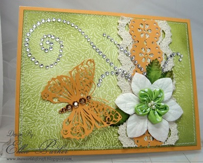 (A2; Butterfly: Silhouette; Border Punch: Martha Stewart; Lace: Really Reasonable Ribbon; White flower: Inspired by Stamping)