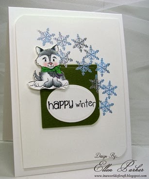 I love it when I can combine a couple of challenges and it works! The LIM challenge is Sparkle and the COS challenge is a winter theme, so I used the new DP set, Winter Critters, and fussy cut the adorable Huskie and used a SB oval to cut the sentiment. I also used a square SB to cut the green square and rounded two corners. I then attached everything with removable double sided tape and used the snowflake from RST’s Winter Night Sky to emboss the snowflakes using blue and silver mixed. After the embossing was finished, I removed the images, added foam tape on the green square and the Huskie and attached them aligned with the snowflakes. I’m not sure if you can see it in the picture, but the snowflakes are sparkly.